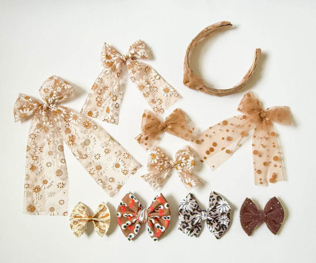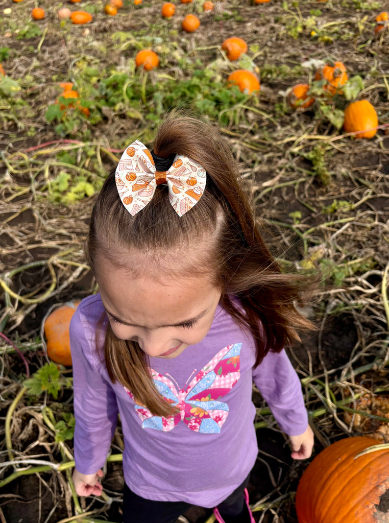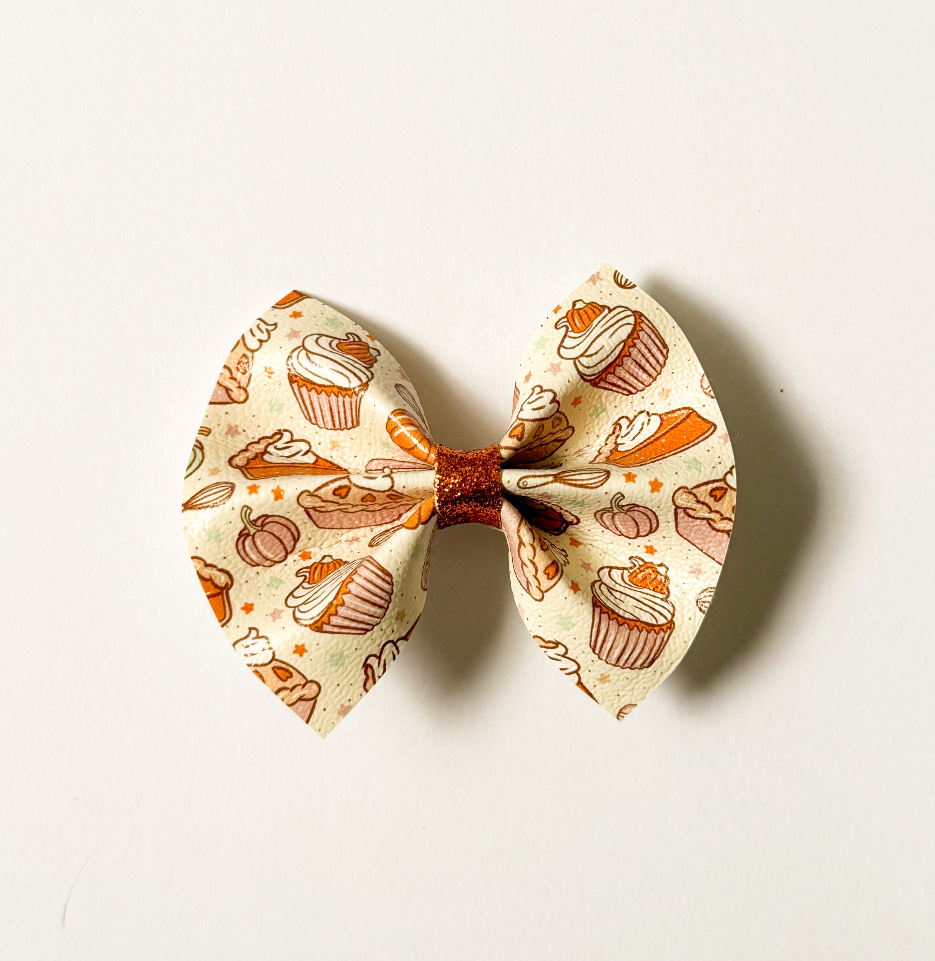 Creamy white leather with the tastiest fall baked treats, in our Classic XL Leather bow style.