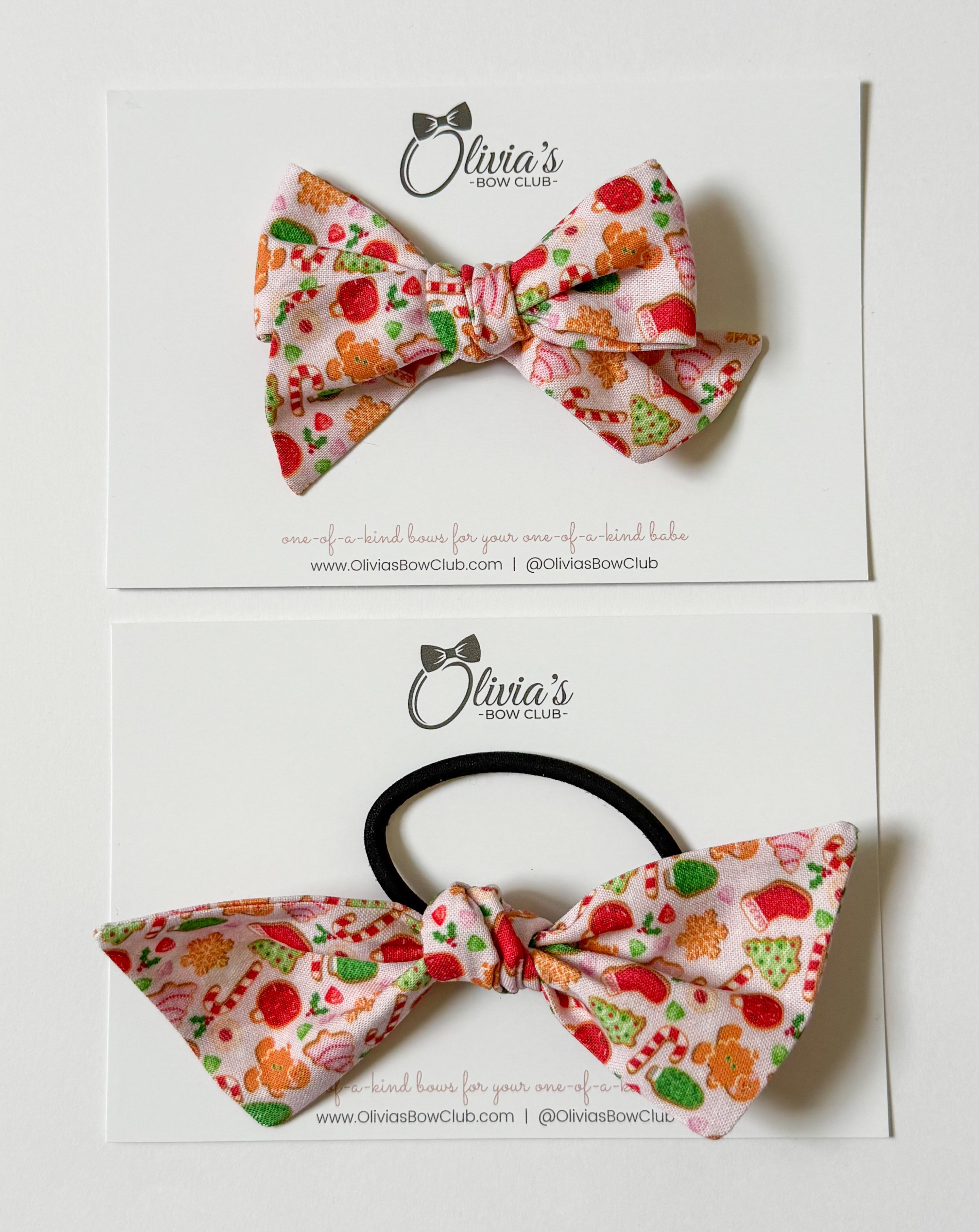 A sweet light pink bow sprinkled with the cutest little sugar cookies for your sweet babe.