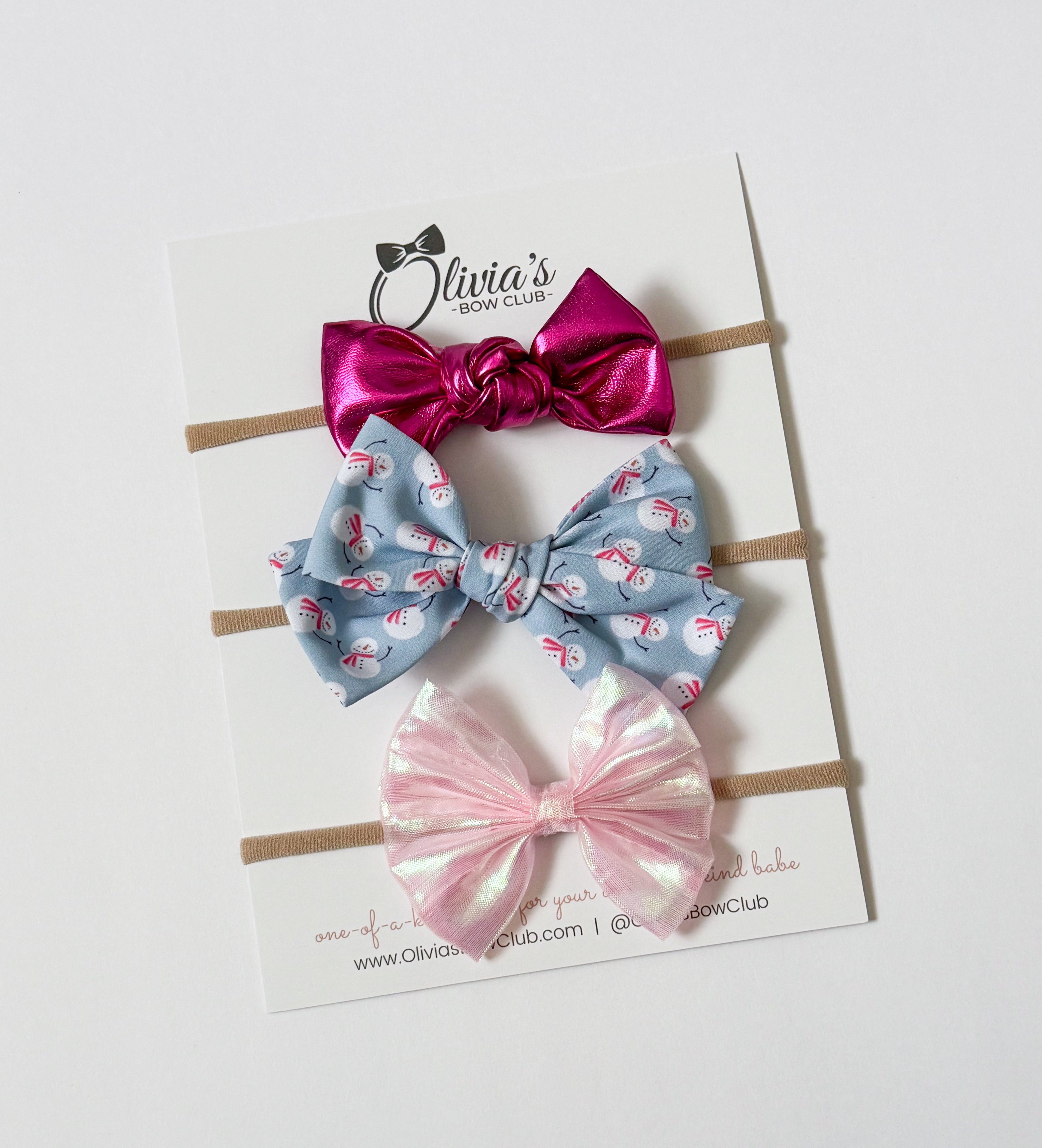 Returns for credit or a refund may be available at our discretion for wrongful renewals, damaged bows, and other special circumstances. Please email us at support@oliviasbowclub.com.