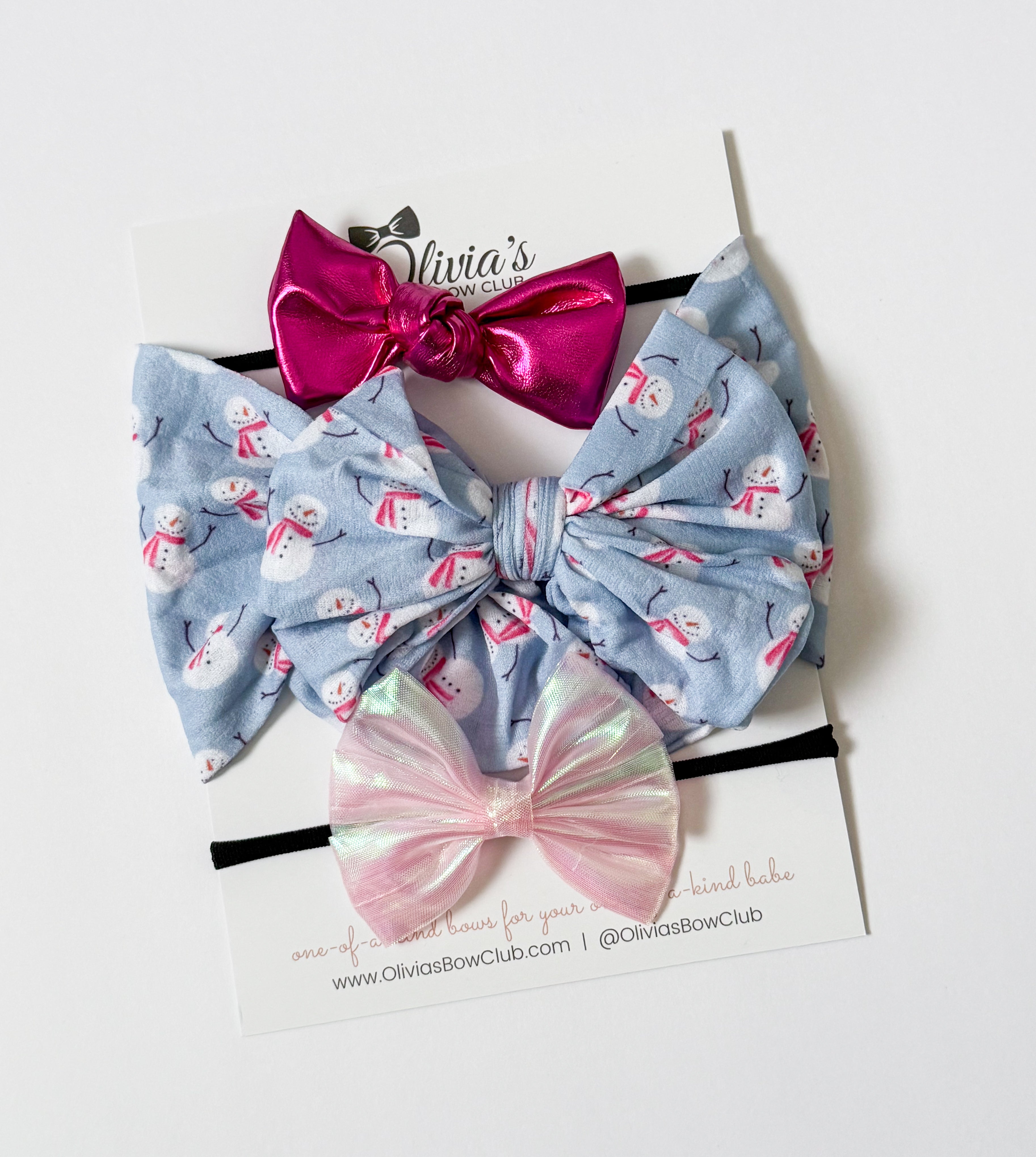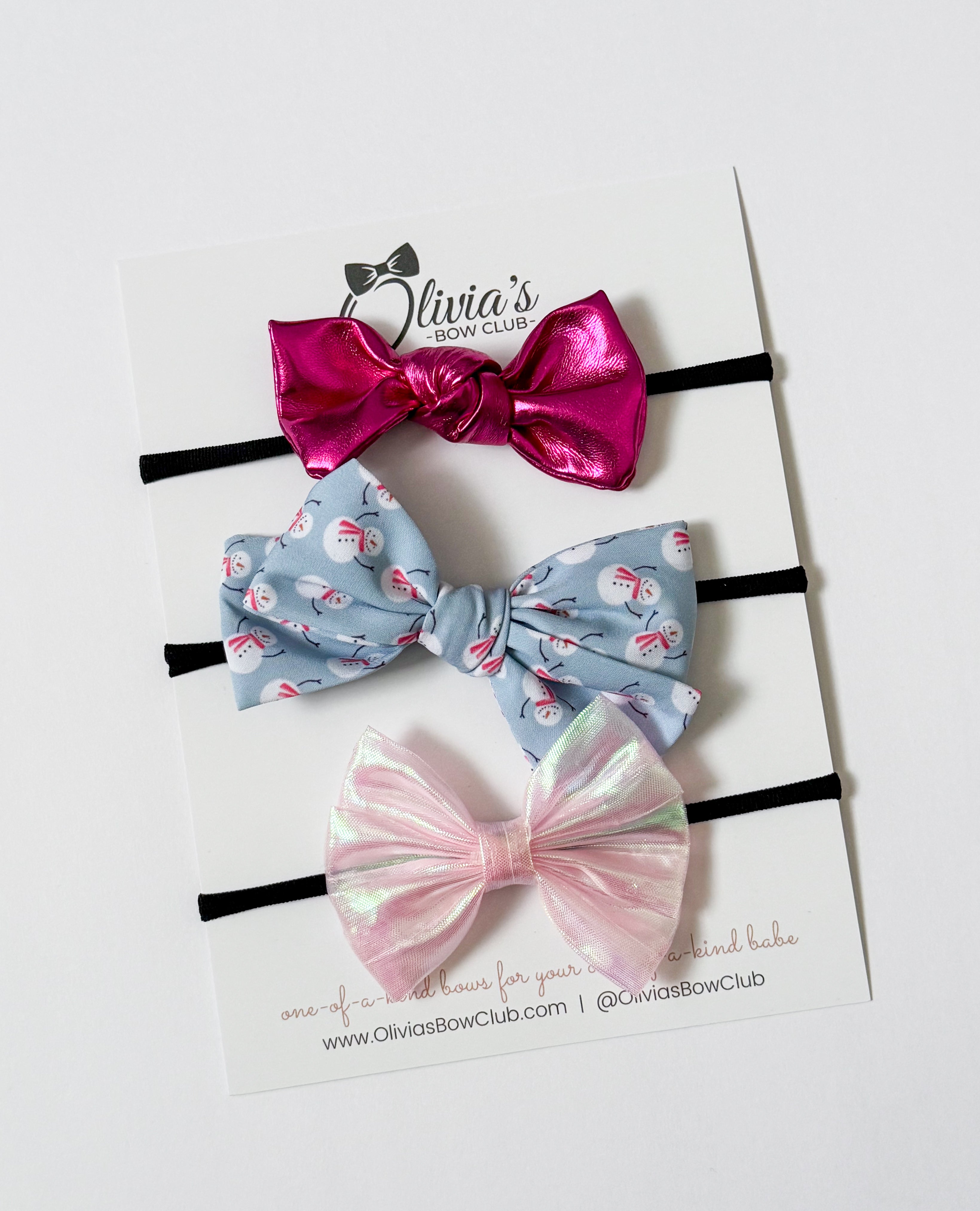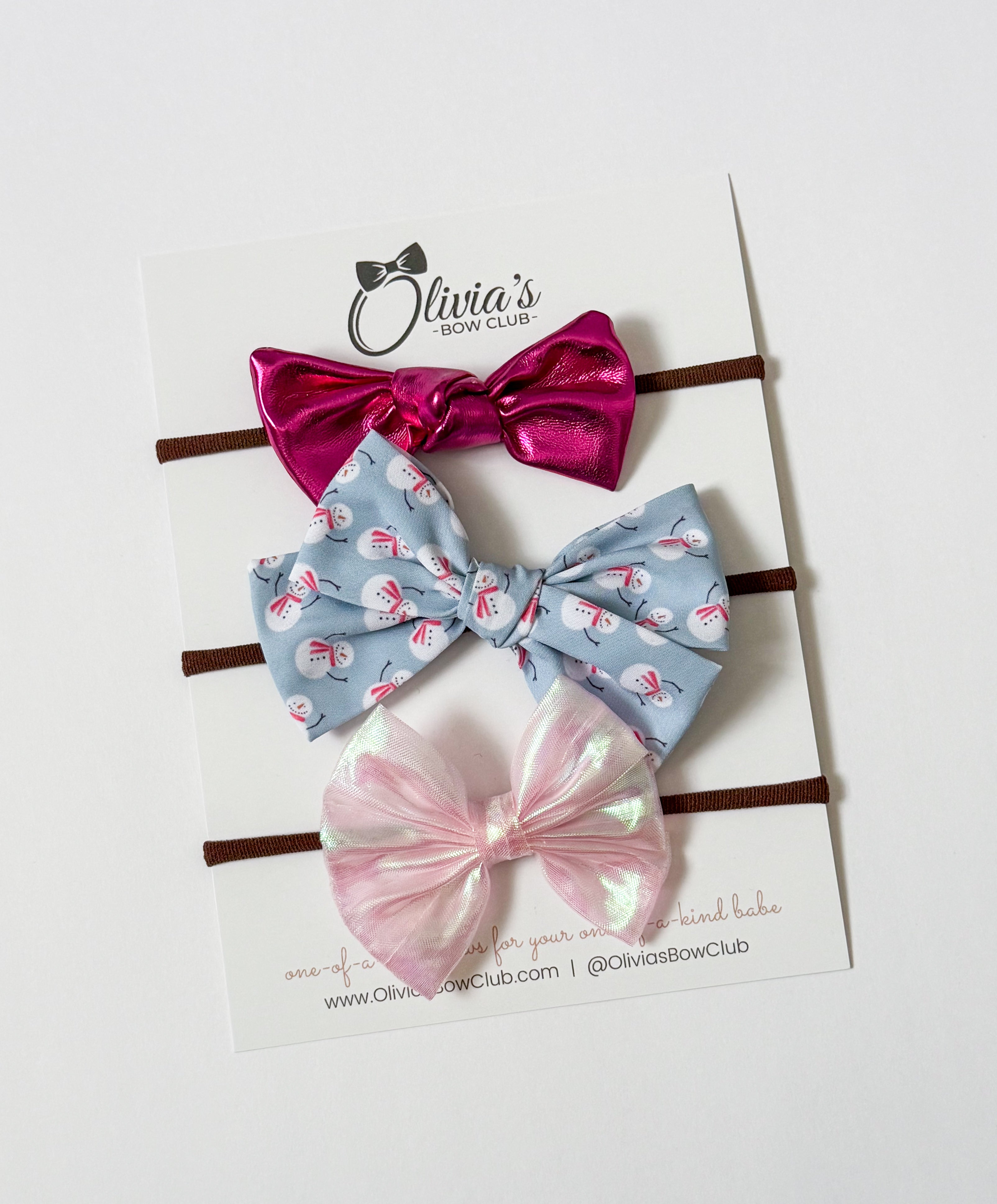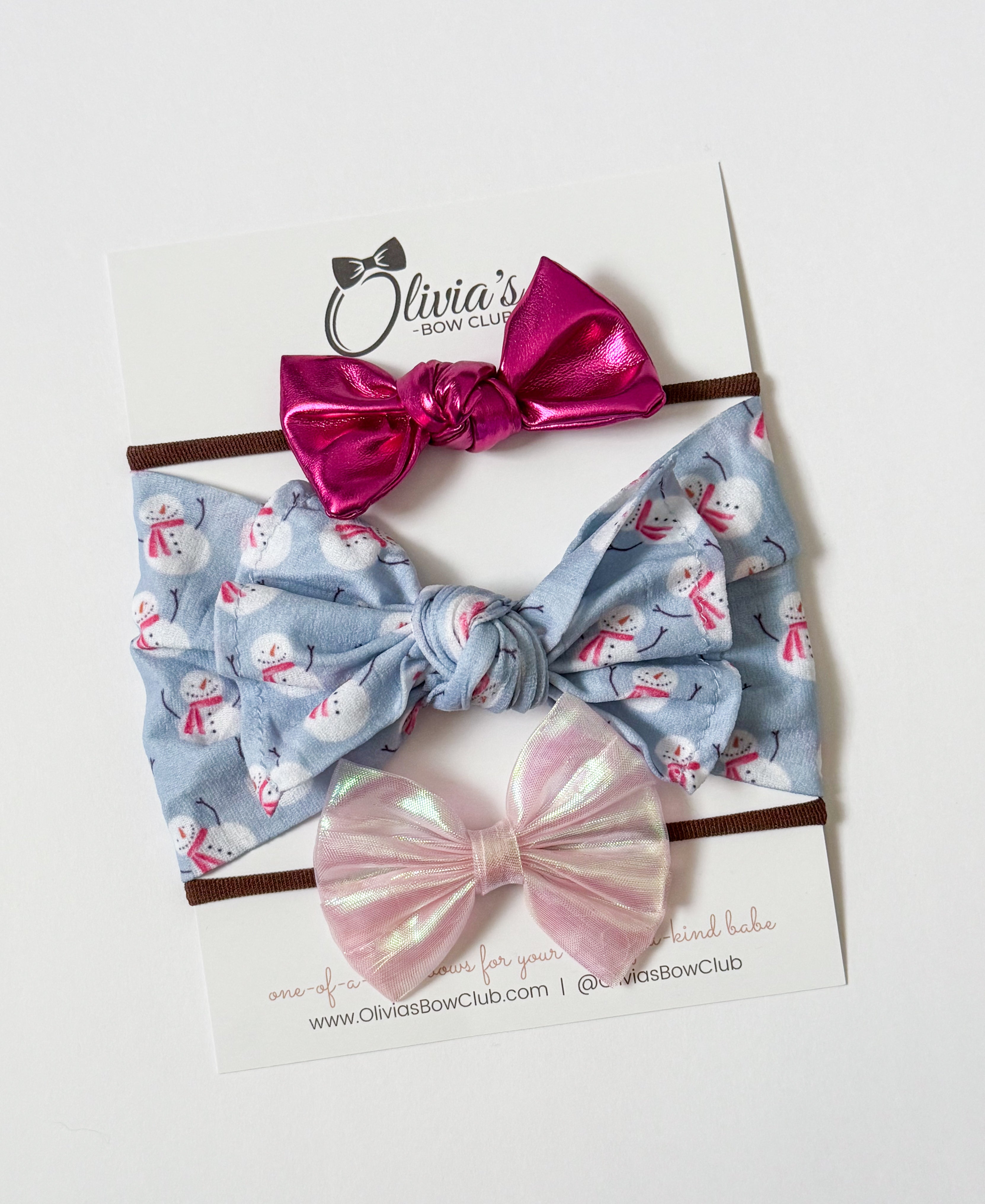 BOWS: Our bows are limited quantities and seasonal, so we do not accept regular returns for credit. However, if your bow is damaged or has an issue, we will absolutely take care of it for you and make sure you get a quality bow! Please email us at support@oliviasbowclub.com